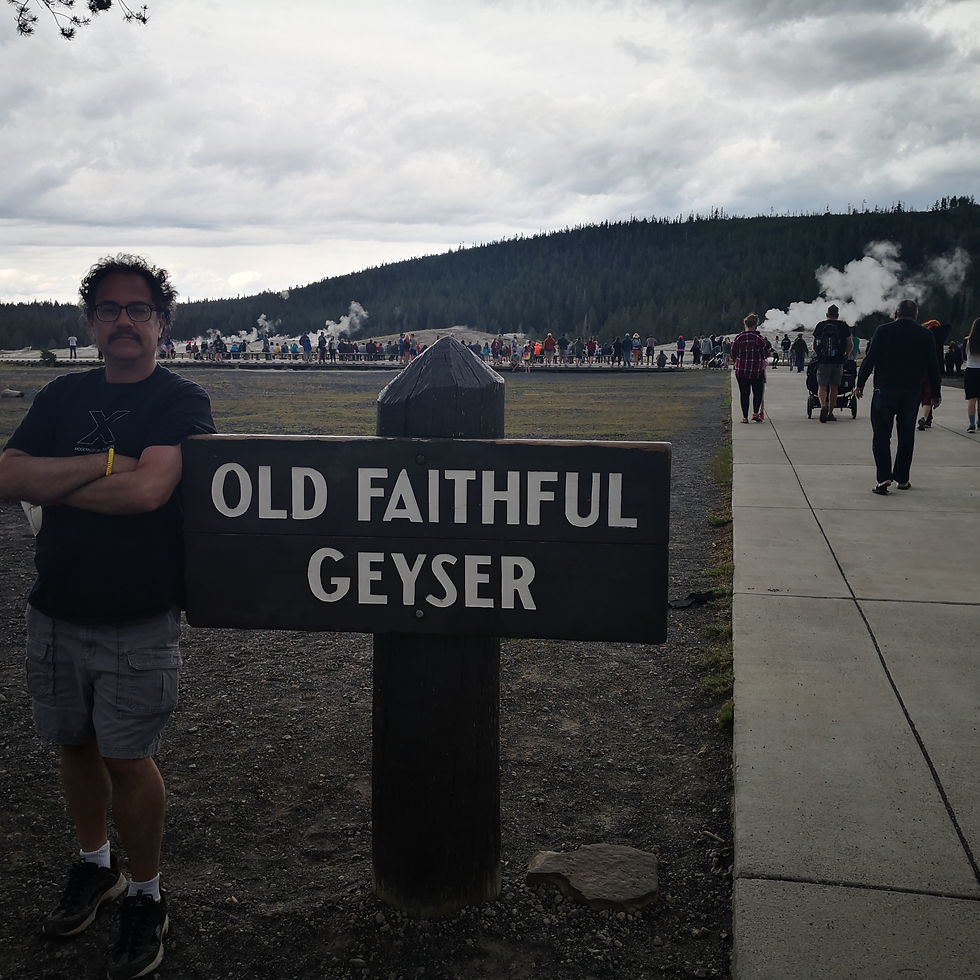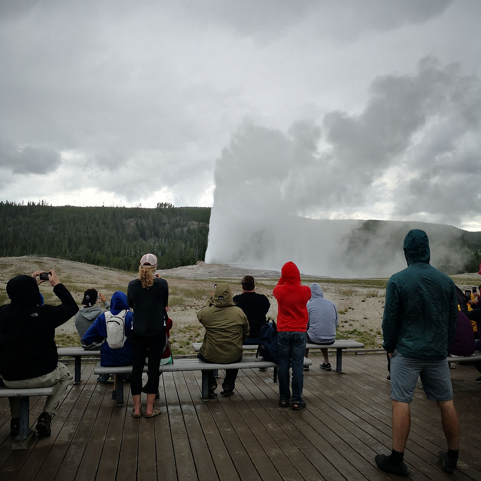 Afterwards, we drove to Old Faithful. On the way, we passed Yellowstone Lake which was gorgeous and huge - it seemed to go on forever! I told Ian that if we got there with a half hour or less until Faithful erupted, I'd consider it a win (it erupts every 90 minutes). It turns out that we arrived 20 minutes before the next eruption - woo hoo! It erupted for a good minute and a half. It was awesome...I included a video so you can see what it looks like.