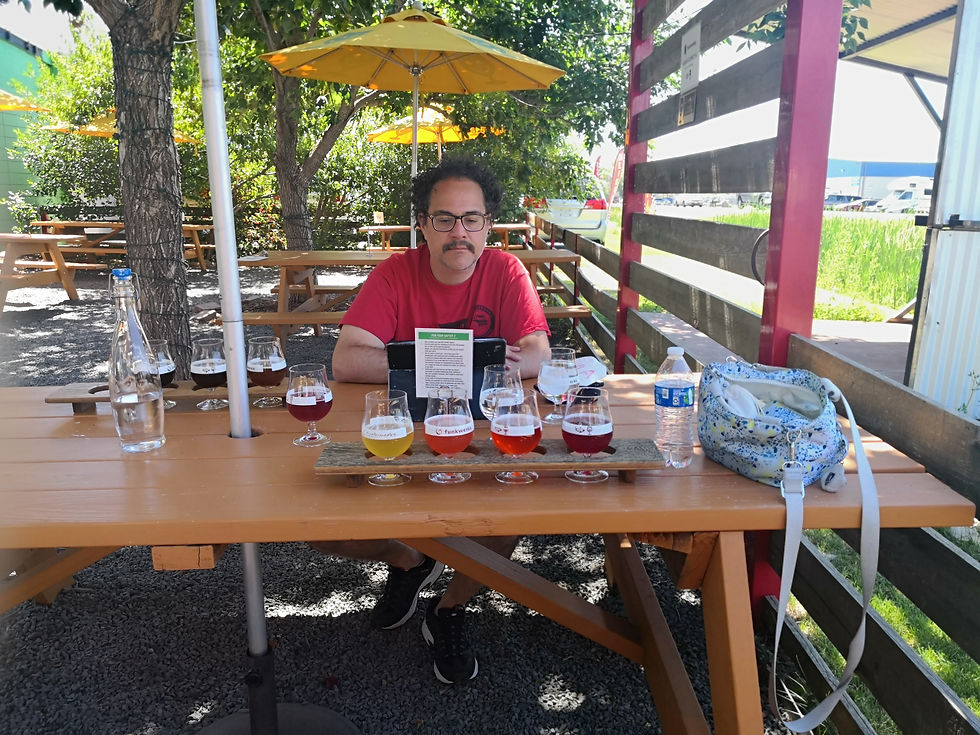 After leaving beautiful Cheyenne, we stopped in Fort Collins for a walk around downtown and visited some breweries. We went to Funkwerks and had a flight. I didn't like the last two beers and the server discounted our flights by $7! We told her she didn't have to do that, but she insisted - so nice! Ian was especially excited to visit New Belgium brewery, because they have a sister location in Asheville - one of his favorite spots. He got his favorite beer in a bottle - they ran out of it on draft. Must be pretty good?