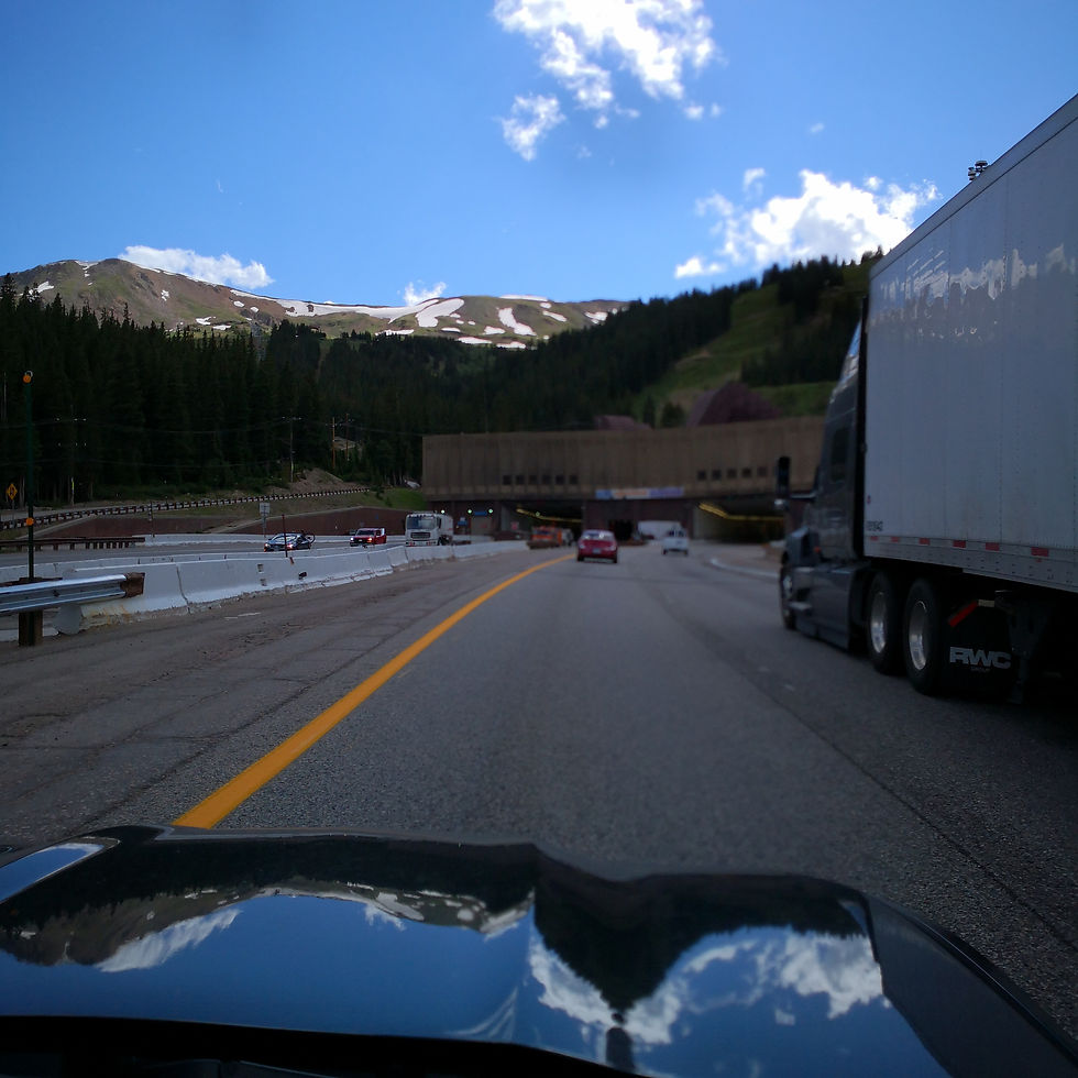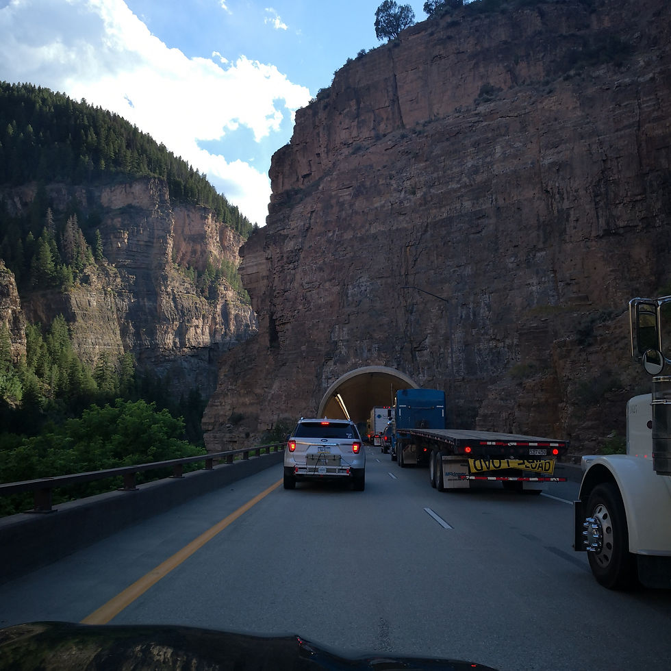 Driving through the Rockies was amazing! There was still snow on the mountains! I wish I could have looked at the scenery more, but I was driving, but Ian enjoyed it. We were essentially cradled by mountains through most of the trip. We had a pit stop in Vail, CO - a town I always wanted to visit. The main village was cute, but touristy - a little too fancy for my taste. But there were some interesting sites that are included in the pictures. We hit some really bad traffic for the first time on this trip - it was bumper to bumper for 40 minutes due to road construction.