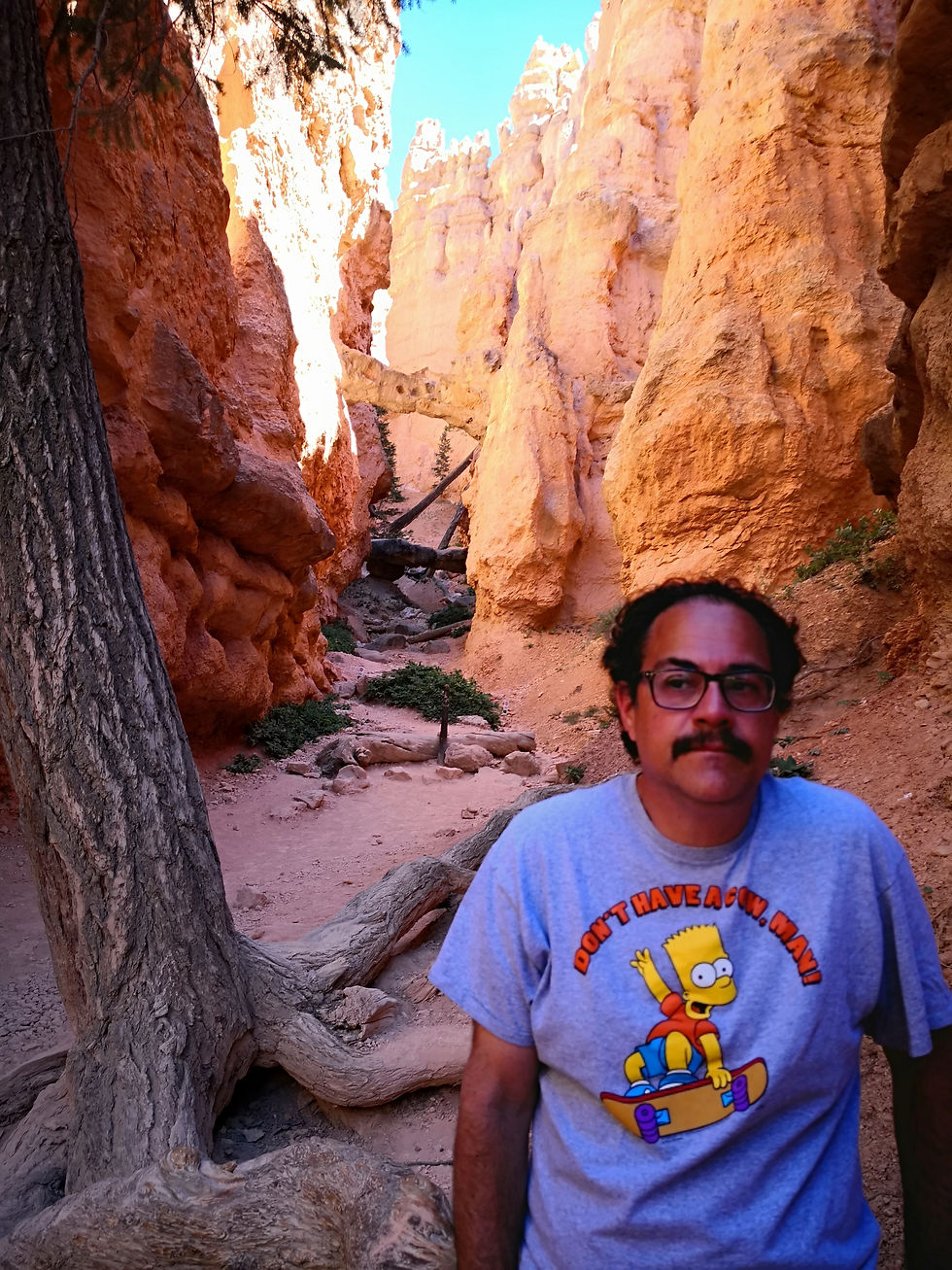 Today started in Tropic, Utah as we woke up in our tiny cabin from Bryce Valley Lodging. Last night, I realized that, with a little research, we needed to do two more things at Bryce Canyon - the Queens Trail and the Natural Bridge. When we got there, we couldn't figure out how to get to the Queens Trail so we braved a more difficult trail that's also quite popular - The Navajo Trail. On the trail, we saw "Wall Street" and "The Two Bridges". This type of hiking is already tough for lazy folks like us, but it was even more difficult wearing a mask. Often, people would be within 1-2 feet of us and hardly anyone was wearing a mask. But anyway, the views were spectacular and I was really proud of us for doing anything other than an easy trail. Then, we drove to the Natural Bridge which was another amazing view. After that, it was time to go to Zion National Park.